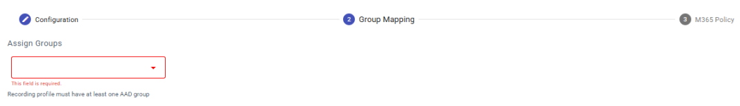 In the Group Mapping section, under 'Assign Groups', Select at least one AAD group. The security groups is automatically populated after synchronization is completed in the Call Recording System Settings tab that was configured earlier.