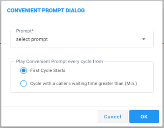 Cycle with a caller's waiting time greater than - prompt starts playing in the cycle that is equal to or greater than the time configured in this field. |