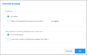 Callers who entered the queue ... - plays the prompt only to callers who entered the queue from the position configured in the field or higher |
