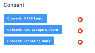 Click each of the buttons below and complete the Microsoft consent process. These consents are mandatory to enable call functionality in the customer’s environment. |