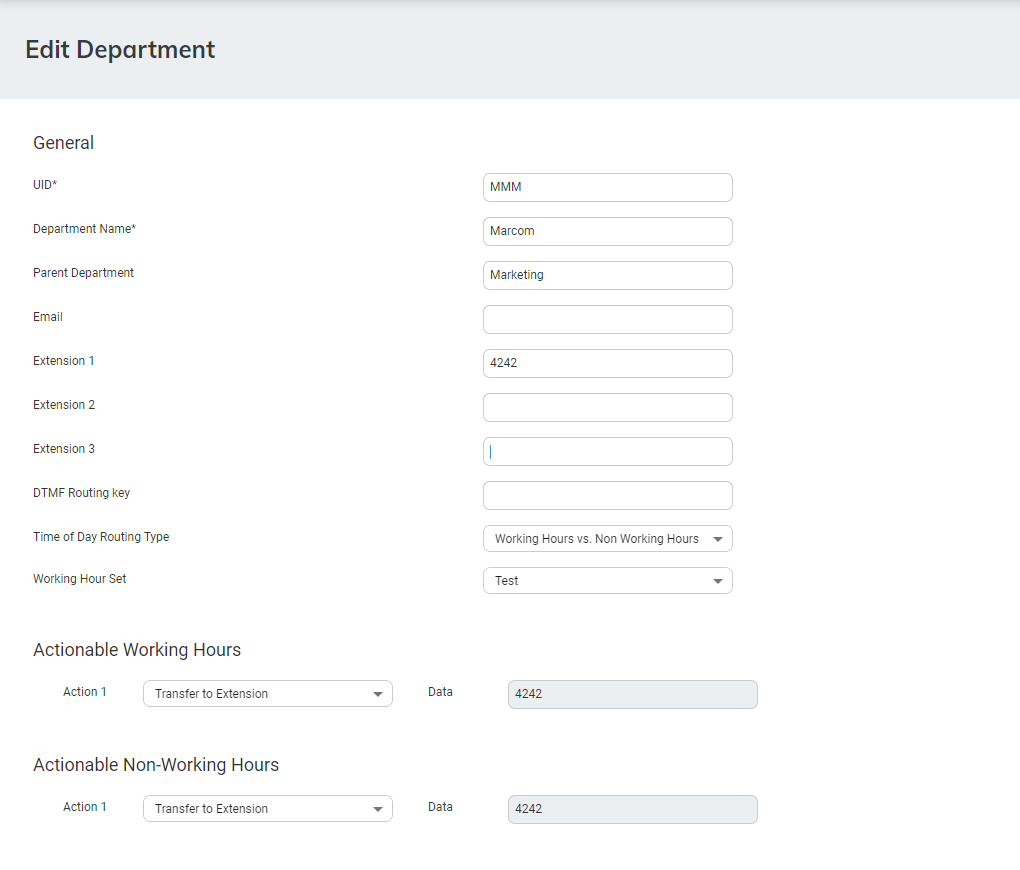 4. From the ‘Actions’ drop-down list, select Edit Department; the following appears: