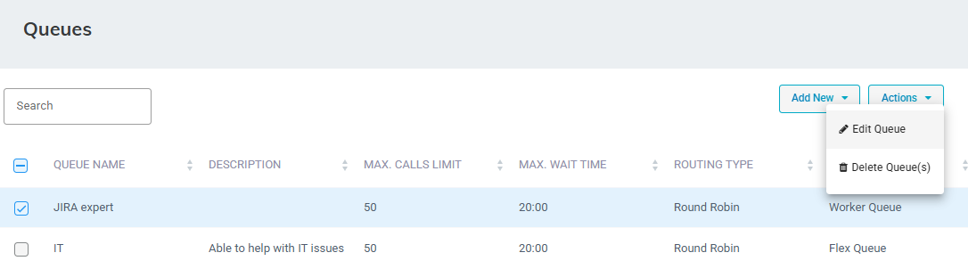 | 2. | Select the Worker Queue that you wish to edit, by selecting the corresponding Call Queue check box. |