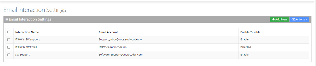 | 1. | Open the Email Interaction Settings page (Configuration > Interaction Manager > Email); the following appears: |