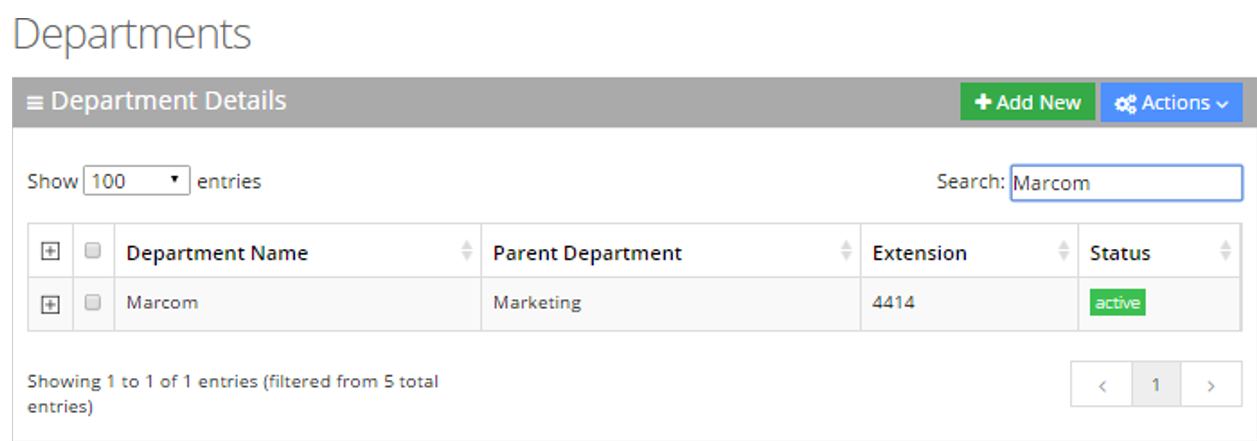 The procedure below describes how to search for a department.