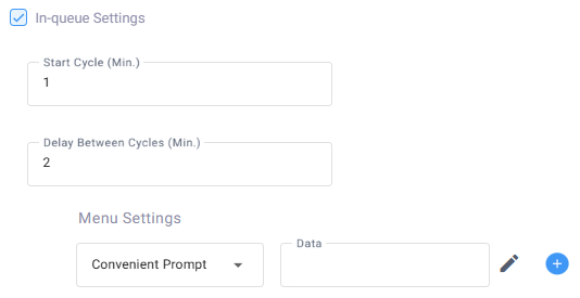 To provide callers with various actions and options during their waiting time, select the 'In-queue Settings' check box; the following appears: |