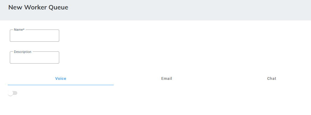 Select the Voice tab; and click the toggle button to enable the establishment of the channel for the queue. The following appears: |