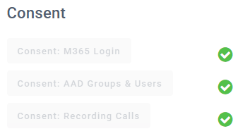 Click each of the buttons below and complete the Microsoft consent process. These consents are mandatory to enable call functionality in the customer’s environment. |