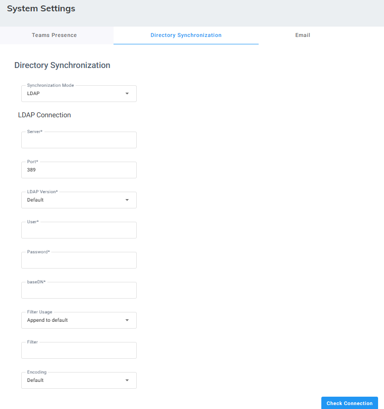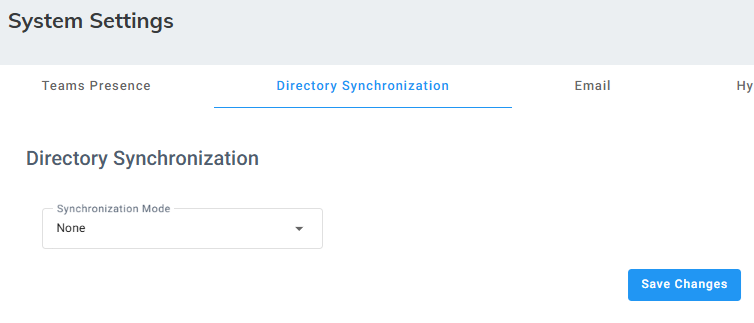 Open the System Settings page (Configuration > System Settings > Directory Synchronization). |