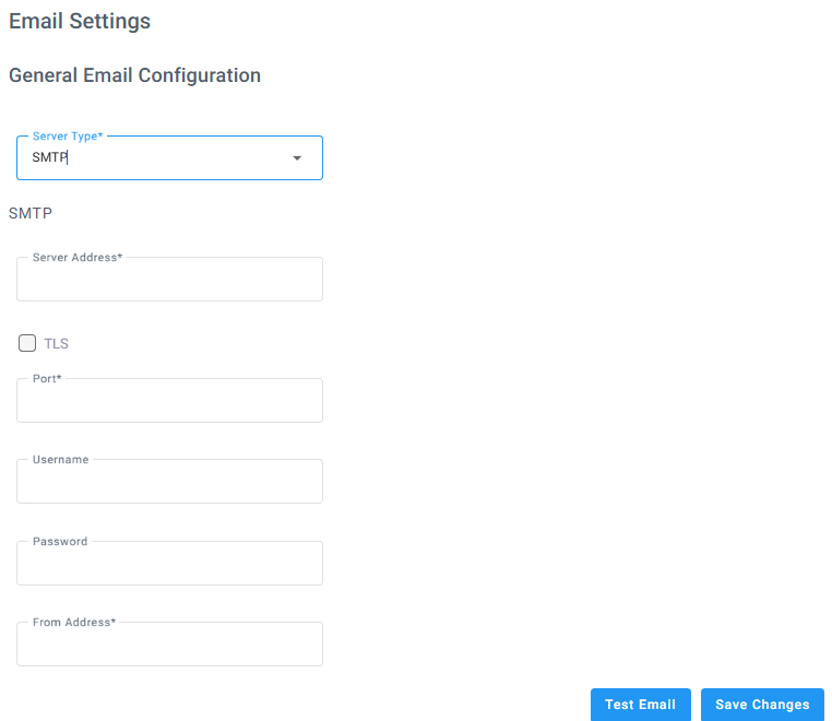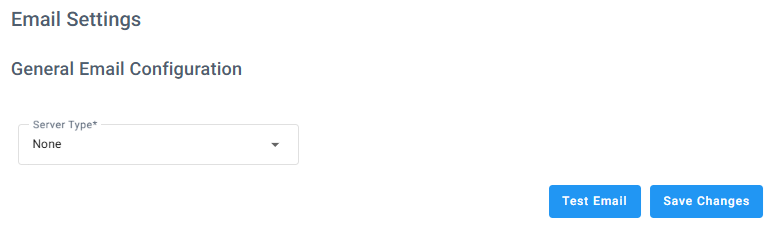 | 2. | Under General Email Configuration, from the ‘Server Type’ drop-down list, select SMTP; the following appears: |