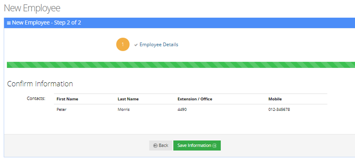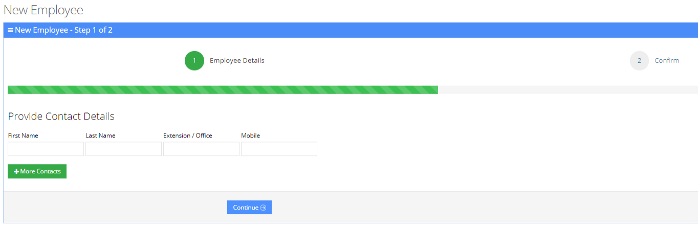 Configuring additional employees allows the organization Administrator to add more contacts which will not be included in the organization's contact list. These additional employees will not be reached through voice dialing, but will be part of the organization and will be provided with employee privileges (i.e., the same configuration that is set for employees).