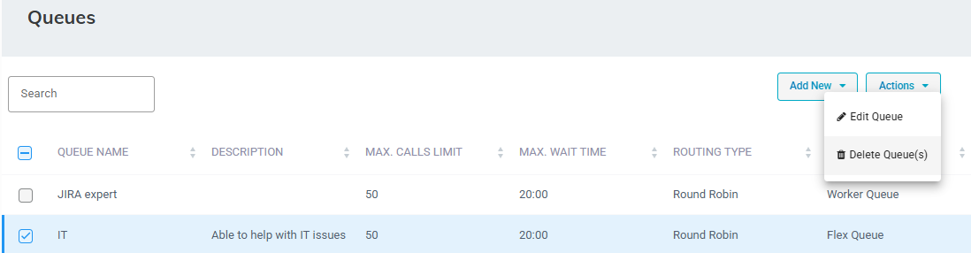 From the ‘Actions’ drop-down menu, choose Delete Queue(s). |