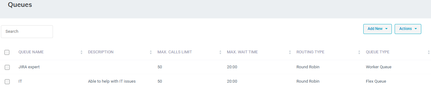 Open the Queues page (Configuration > Routing > Queues); the following appears: |
