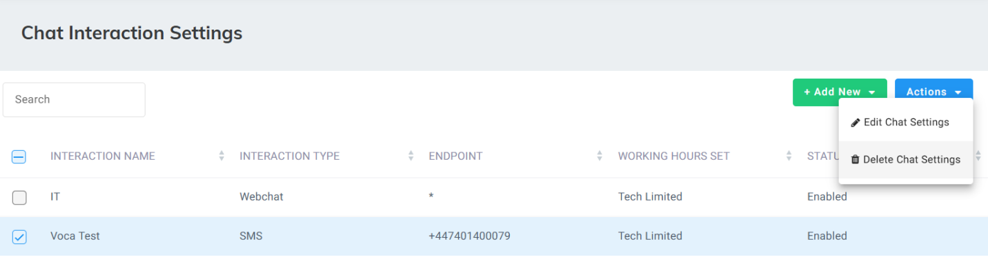 The procedure below describes how to delete SMS Interaction Settings.