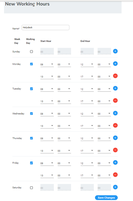 1. Open the Working Hours Details screen (Configuration > Working Hours); the following appears: