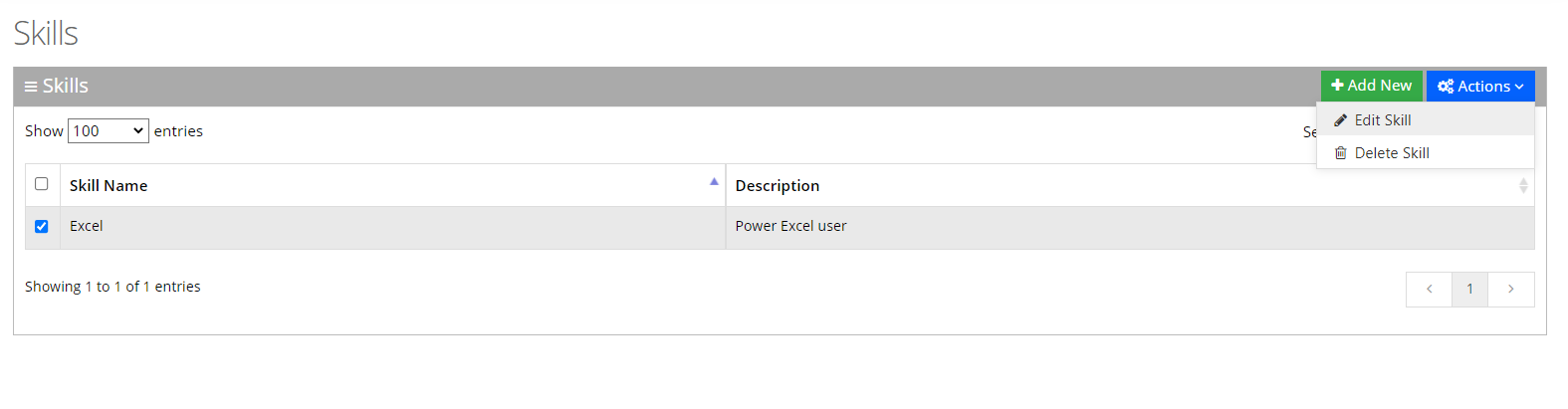 | 2. | Select the Skill you wish to edit by selecting the corresponding check box. |