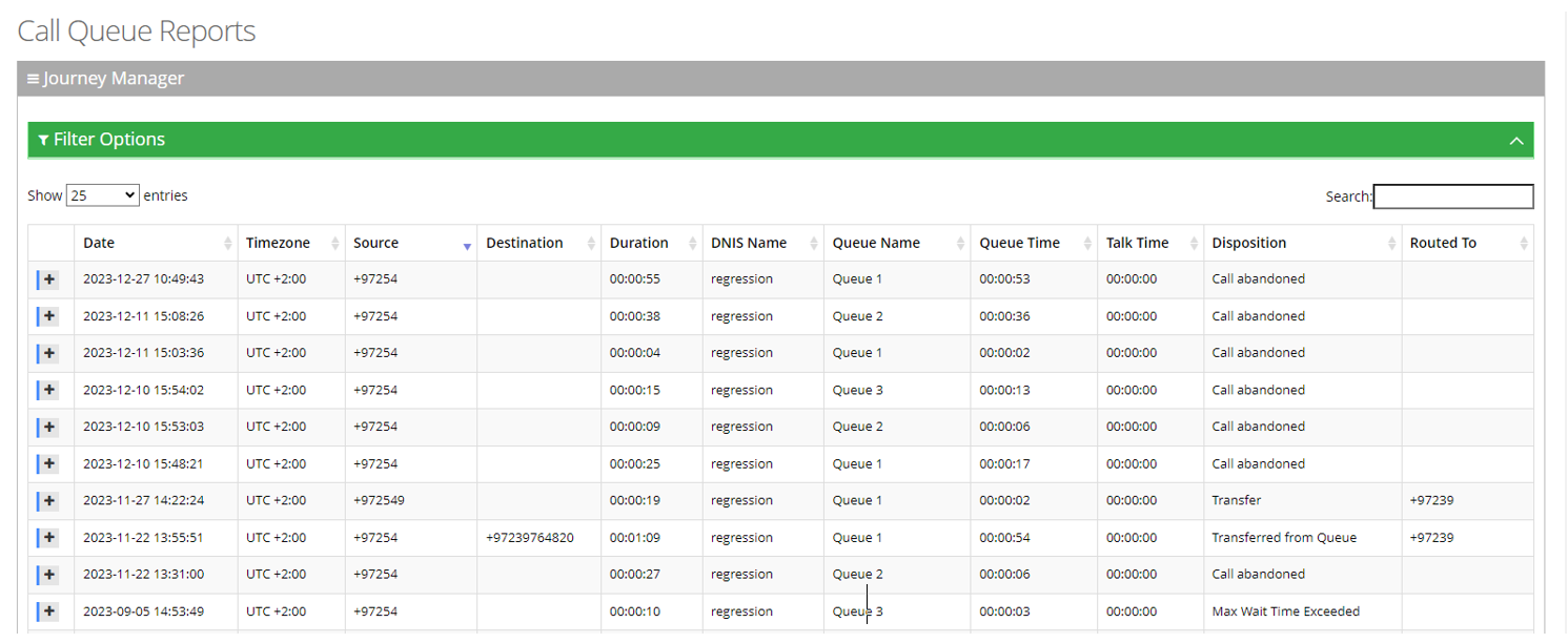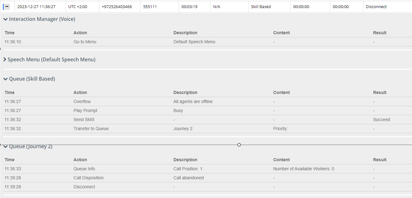 The Journey Manager Report displays a summary of calls with a full detailed flow, from the moment it enters to the questions asked and answers provided.