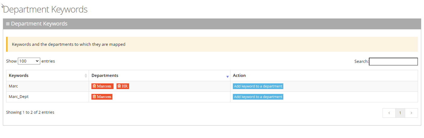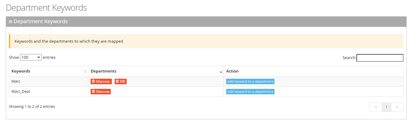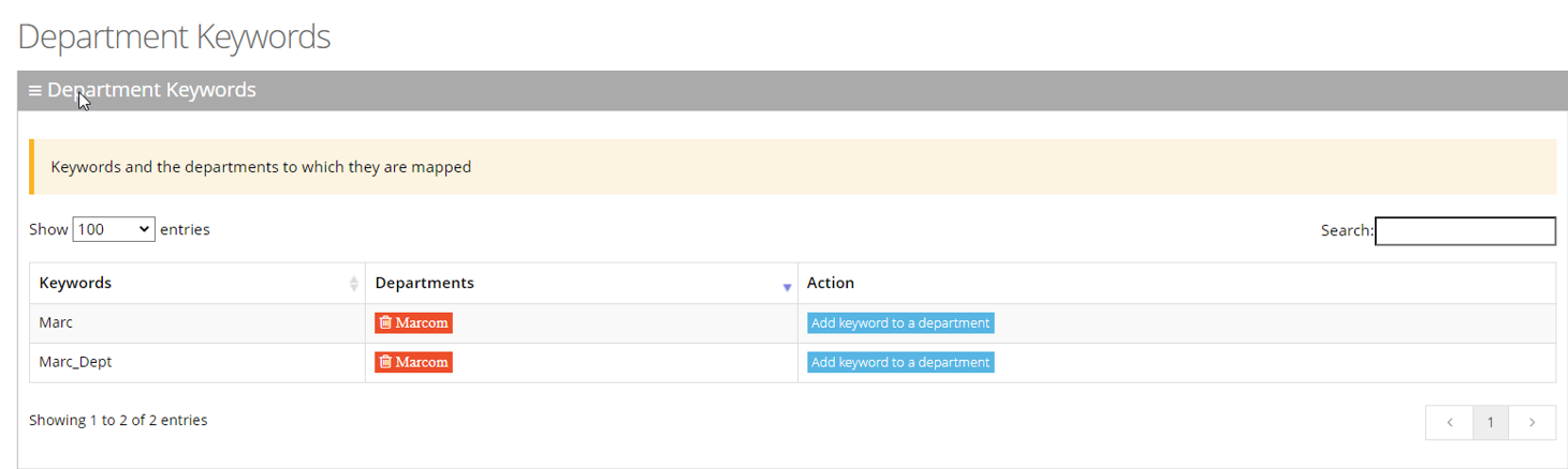 Place the cursor on the keywords that you wish to have the department mapped to. |