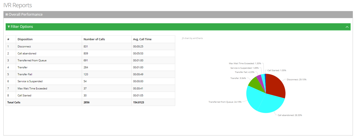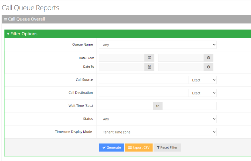 Open the Overall Report page (Reports > Call Queues Reports > Overall); the following appears. |