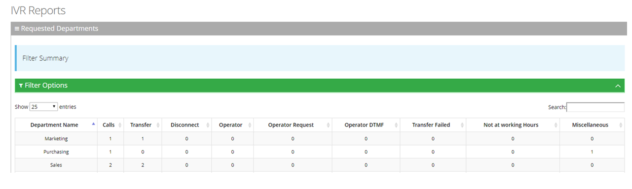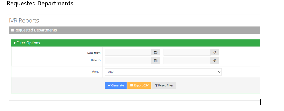 | 1. | Open the Requested Departments page (Reports > IVR Reports > Requested Departments); the following appears. |