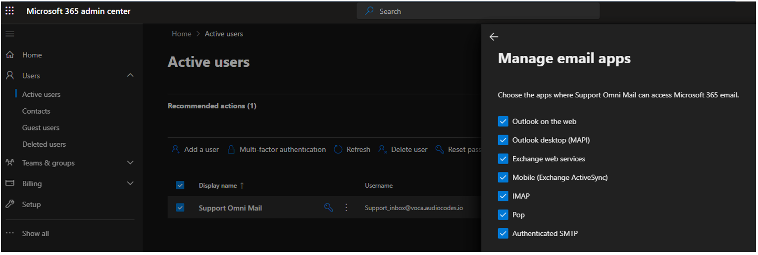 Add-MailboxPermission -Identity “Support_inbox@voca.audiocodes.io" -User <Voca Omnichannel Email Object ID> -AccessRights FullAccess