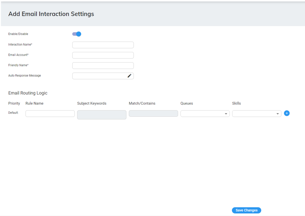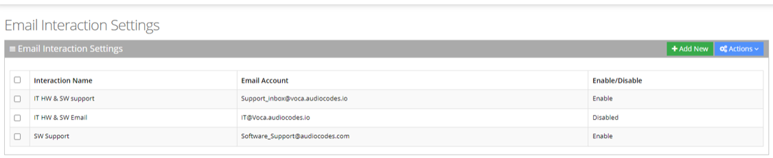 The procedure below describes how to add Email Interaction settings.