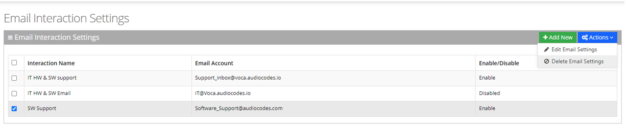 The procedure below describes how to delete Email Interaction Settings.