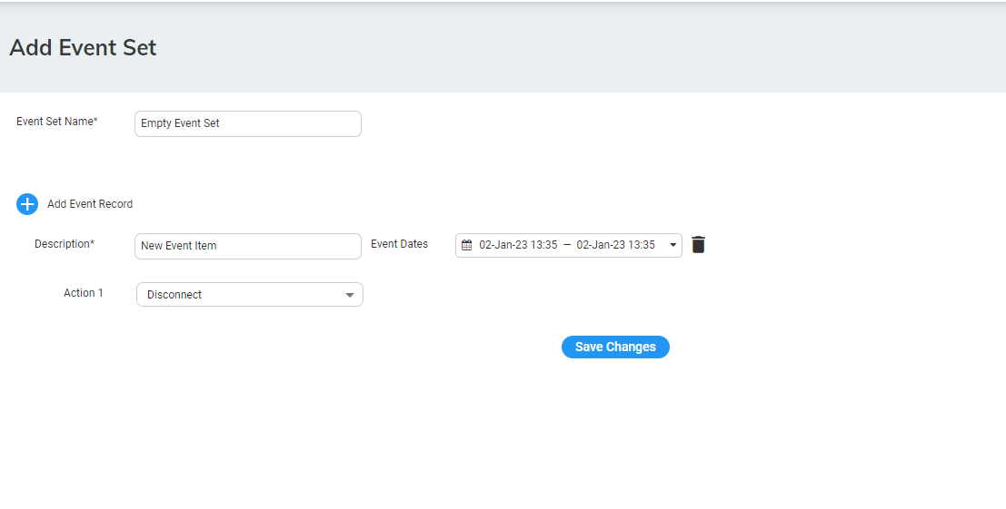 | 3. | In the 'Event Set Name' field, enter name of the event set. |