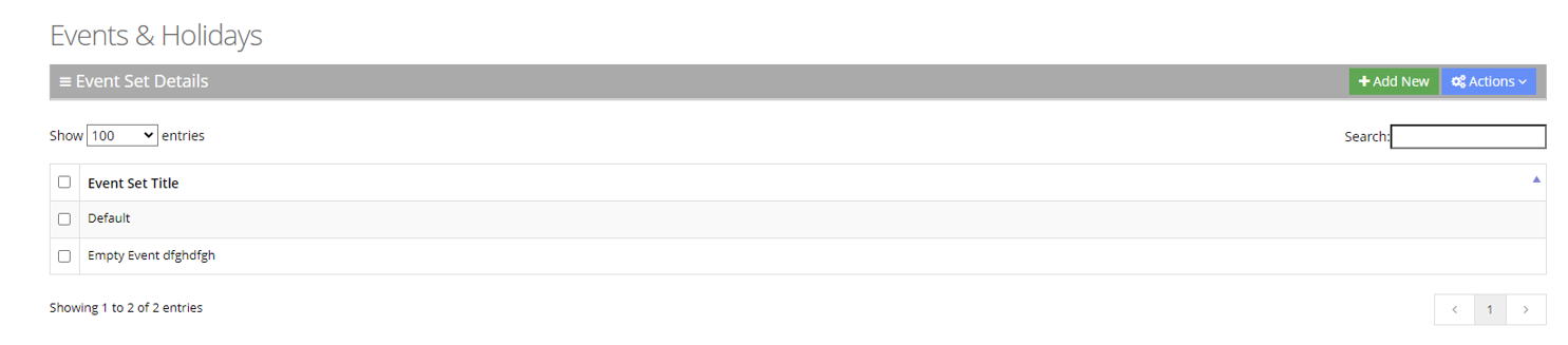 | 1. | Open the Events & Holidays Details screen (Configuration > Events & Holidays); the following appears: |