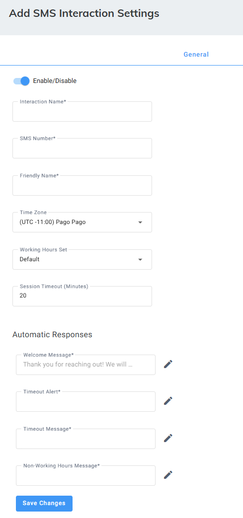 a. Click the ‘Enable/ Disable’ toggle switch to enable the SMS interaction.