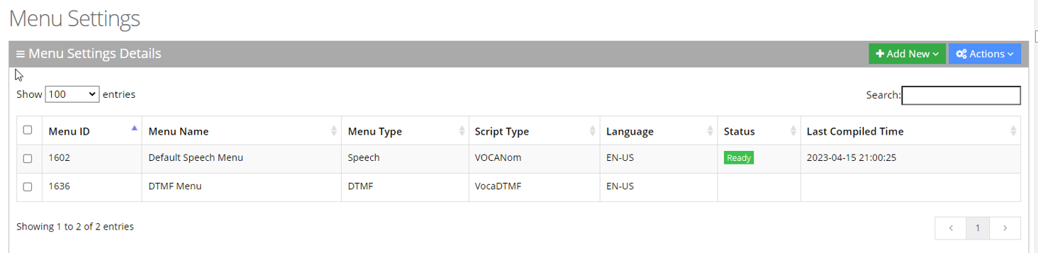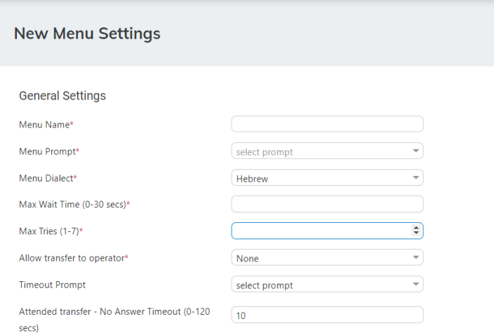 Click + New DTMF Menu; the following appears: |