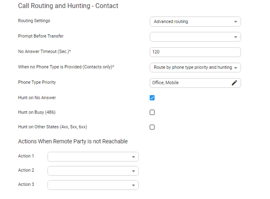 In the 'Phone Type Priority' choose the priority list that the system should hunt when routing contact and choose which type of hunt you want to enable.