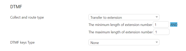 10. Under the DTMF group, from the 'Collect and route type' drop-down list, select the appropriate value. This is used to collect and route by one or more digits: