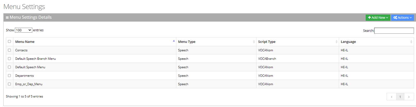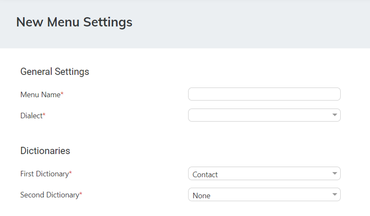 3. Select the + New Speech Menu; the New Menu Settings page appears: