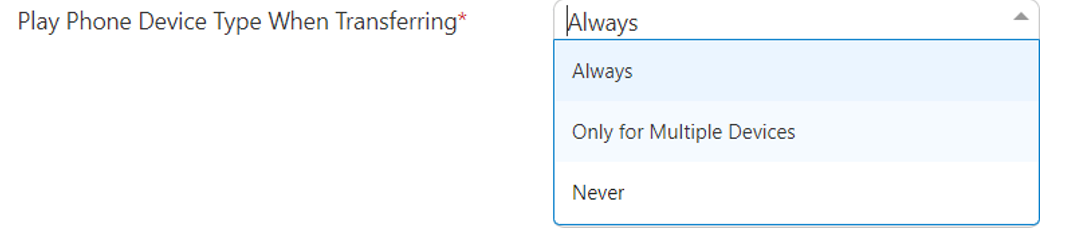 From the 'Play Phone Device Type When Transferring' drop-down list, select the appropriate value.