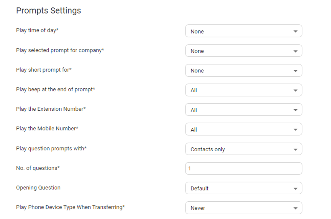 From the 'Prompt Before Transfer' drop-down list, select a prompt from a list of available prompts, before the call is transferred.