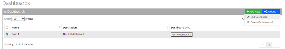 3. From the ‘Actions’ drop-down menu, choose Edit Dashboard; the following appears: