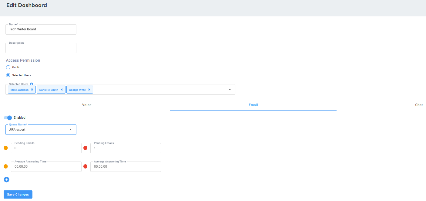 4. Make your changes on the Edit Dashboard page, and then click Save Changes; the updated Dashboard details appear.