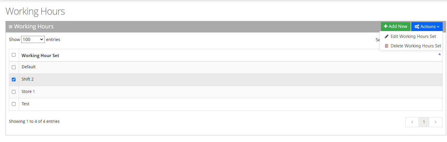 2. Select the Working Hours Set that you wish to edit.