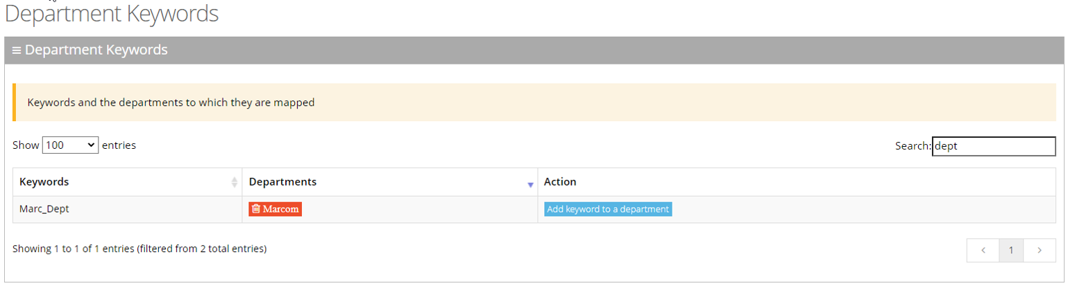 You can use the Search box to search for specific text on the Department Aliases page.
