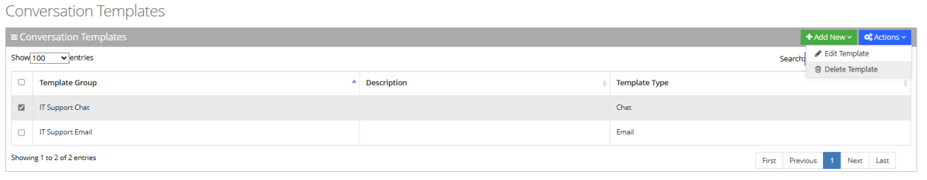 1. Open the Conversation Templates page (Configuration > Routing > Conversation Templates); the following appears: