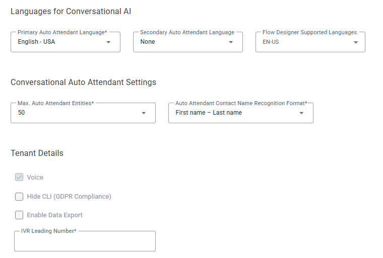 Under 'Conversational Auto Attendant Settings, select the following: |