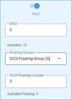 (Optional) Limit the Tenant's usage of its Floating Group. From the 'CIC<3> Floating License' field, select a value that is lower than the number of licenses in the Floating Group, the Tenant will not be able to utilize more licenses than configured in the Floating License fiels, even if they are available. |