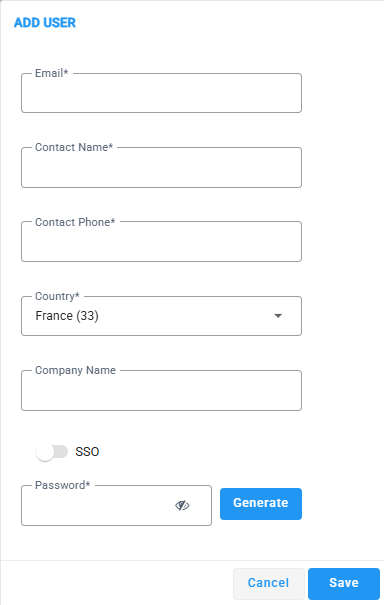 'Password' - Set a password for non-SSO users. Set password manually or automatically by clicking Generate. |