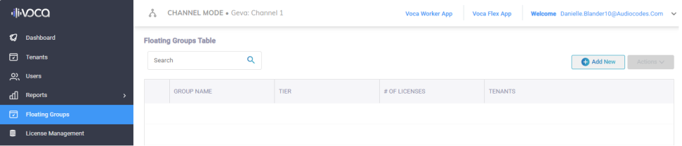 The type of licenses of the Floating Group (CIC2, CIC3, CIC Sessions, IVA Services). |