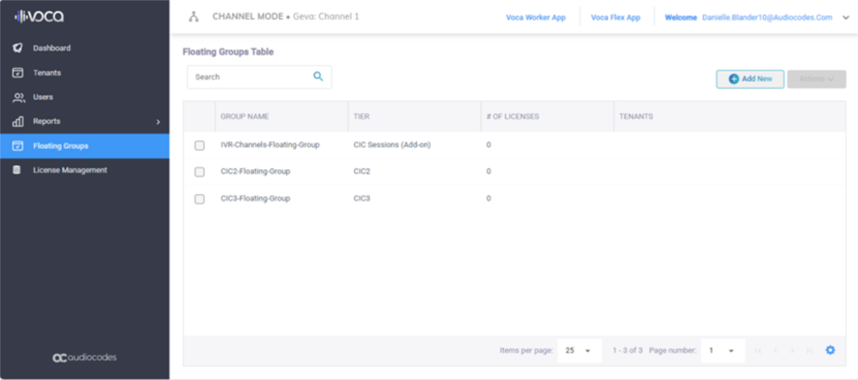 Floating Groups are managed in the Floating Groups section.