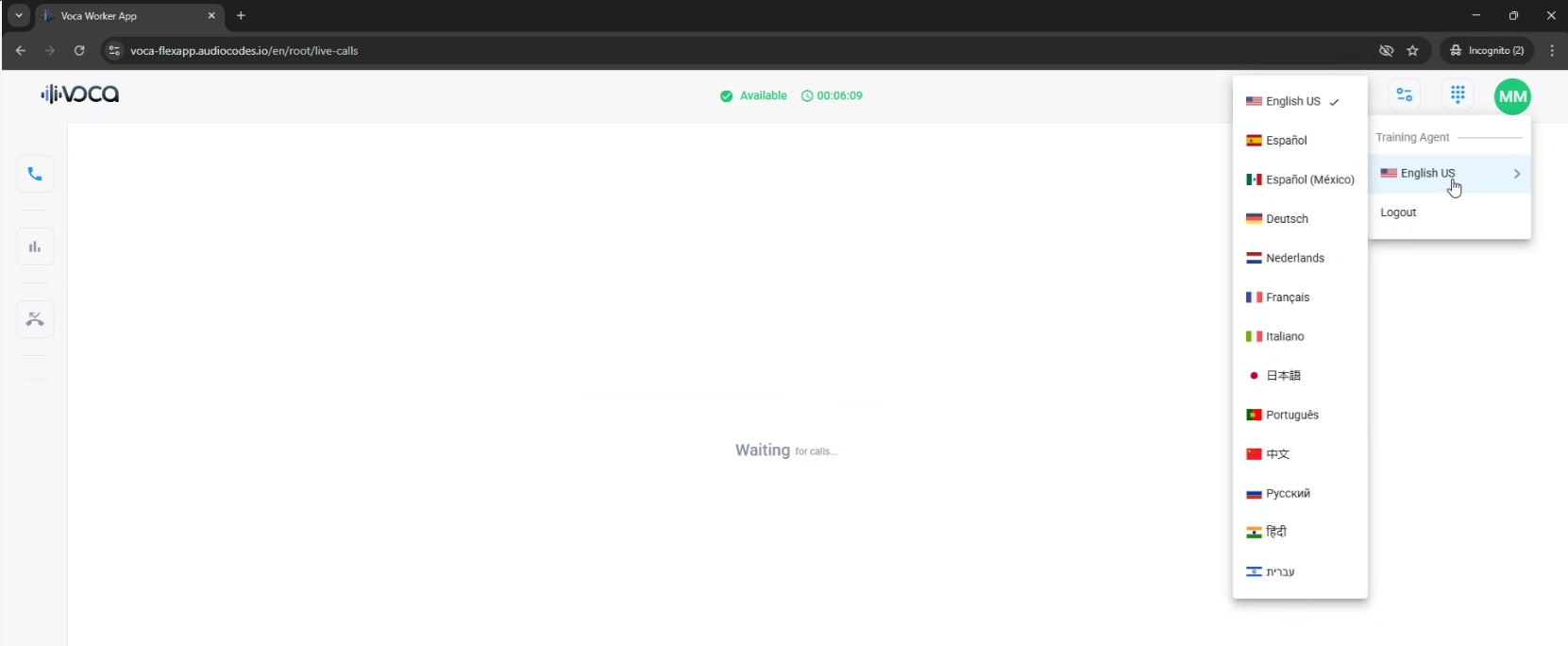 Flex Members can choose their preferred language for the Voca CIC Flex Application. The 14 languages , supported by Azure, include: