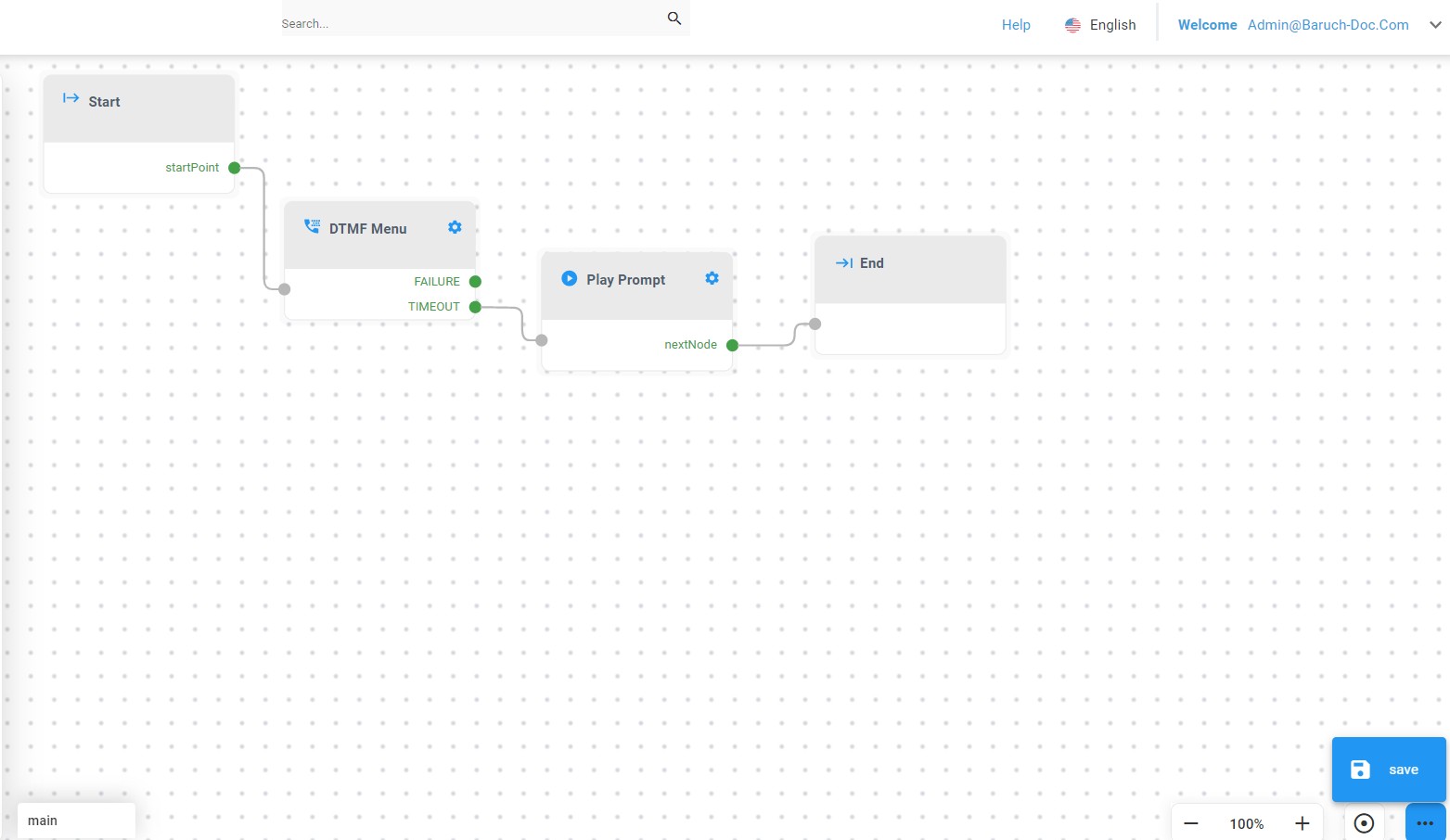 | 1. | On the lower-right part of the main flow designer workspace, click the ellipsis icon (three dots), and then click Save. |