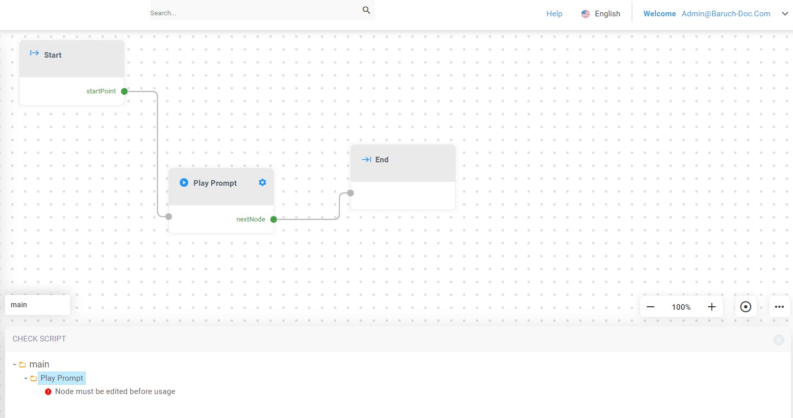 A CHECK SCRIPT validation window appears on the lower part of the screen to display script errors (if any). This feature allows you to easily locate errors and fix them.