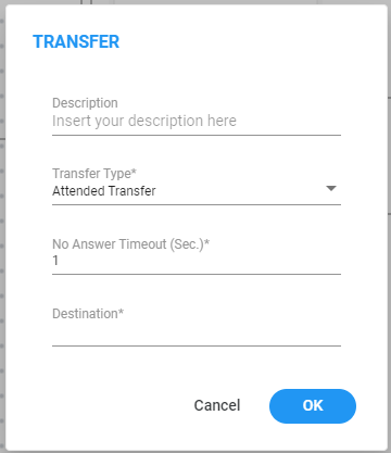 No Answer: The call directed to the assigned destination remained unanswered beyond the duration configured for the "No Answer Timeout" timer. This only appears when you use "Transfer Type" mode during an attended transfer. |