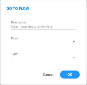 On the left pane, under Actions, click Go To Flow; the following Go To Flow building block appears: |